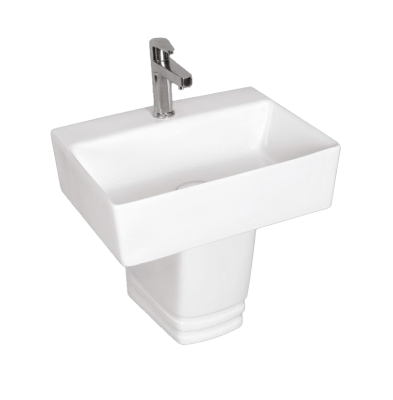 Wall Mounted Half Pedestal Wash Basin White Rectangle