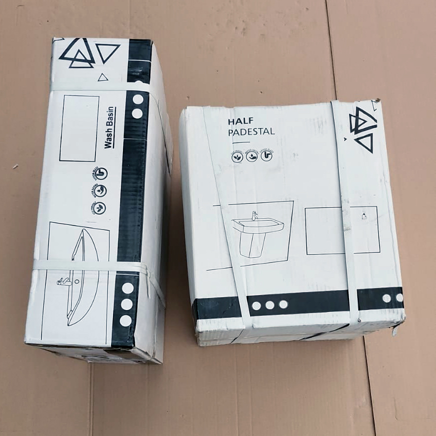 Wall Mounted Half Pedestal Wash Basin White Rectangle
